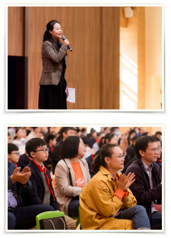 每个人都是自己人生的主角,时刻上演着自己的故事。在月华的故事里,有着温暖的“家”、亲爱的爸爸妈妈,也有孩子们诉说爱上月小的三个理由。将来,月华的故事会很长,但在其中的一页上,必定会留下今天这浓墨重彩的一笔。月华有浓重的色彩,月华有暖心的温度,姜沐蓉同学的妈妈在台上潸然落泪,台下的爸爸妈妈又何尝不被这暖心的月华故事触动呢?正如小主持人说的那样:“如果有一天,我忘记了来时的路,忘记了所有亲爱的人,但我一定不会忘记我热爱着的那个月华园。”爱校园、爱父母,是每个月华少年的呼唤,江苏省歌舞剧院刘延庆老师的一曲《母亲》,唤起了全场对母亲最真切的爱意。